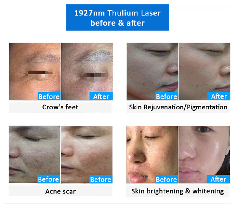 Các1927nm laser thulium, bằng cách điều trị phân số nhẹ nhàng, không thay đổi, giúp da lấy lại vẻ ngoài lành mạnh và trở nên rạng rỡ và dẻo dai hơn. Với sự lựa chọn cường độ năng lượng từ nhẹ đến cao, các phương pháp điều trị có thể được thực hiện quanh năm, không có thời gian phục hồi.