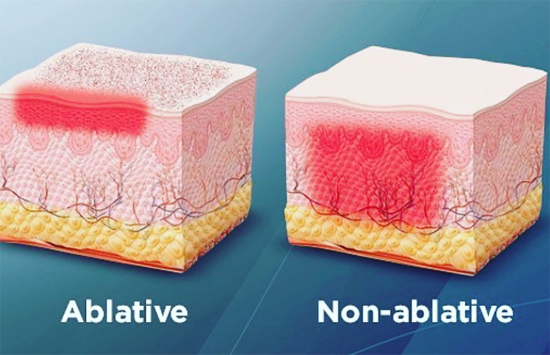 Laser ablative : xâm lấn nhiều hơn và đòi hỏi phải downtin để chữa lành, anh ta tính chất mạnh mẽ hơn của việc điều trị thường mang lại kết quả đáng chú ý hơn trong một phiên, đặc biệt là đối với những người có mối quan tâm nghiêm trọng về da.
