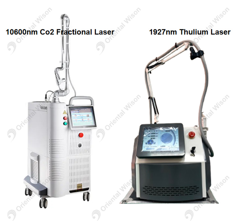 Ablatib laser :(10600nm laser phân số CO2): Hoạt động bằng cách loại bỏ các lớp da bên ngoài, kích thích sản xuất collagen và sự phát triển tế bào da mới.