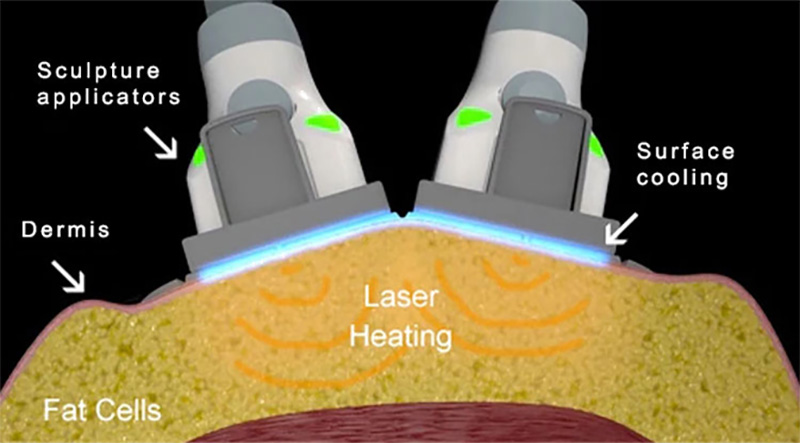 Phân hủy chất béo: Năng lượng laser 1060nm làm cho các tế bào mỡ vỡ ra, giải phóng axit béo và được cơ thể chuyển hóa.