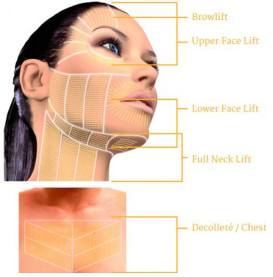 HIFU cung cấp một loạt các lợi ích mỹ phẩm tiềm năng, chẳng hạn như giảm sự xuất hiện của nếp nhăn, thắt chặt da cổ bị chảy xệ, nâng má, lông mày và mí mắt, tăng cường định nghĩa hàm, cải thiện màu da cổ và kết cấu và cho làn da trông mịn màng hơn. HIFU cũng cung cấp những lợi thế hơn nữa, bao gồm cả việc đó là một thủ tục không phẫu thuật, có nghĩa là không cần phải vết mổ, kim hoặc gây mê. Điều này có nghĩa là sự khó chịu tối thiểu, không có thời gian chết và phục hồi nhanh chóng. Có thể phù hợp cho cả nam và nữ. Điều trị của họ phù hợp cho người lớn ở mọi lứa tuổi, bất kể giới tính.